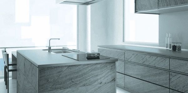 We have been using stone veneer to re-face doors since 2015 for customers who want their kitchens to make a statement.